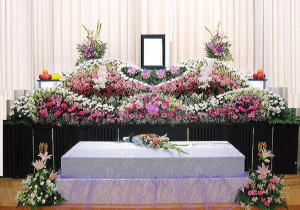 白木or花祭壇・祭壇生花一式・表廻り(入り口のお飾り)・