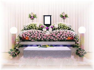 きれいな花祭壇の飾り付けで、ご家族・ご親族様が少人数で式を執り行いたい方の家族葬特別セットプランです。粗供養品・お料理(通夜・当日約10名様)まで含まれていて、リーズナブルで一番人気のセットプランです。